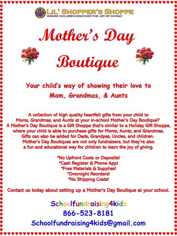 An In School Fundraiser Containing An Assortment of High Quality Heartfelt Gifts From Your Child To Moms, Grandmas, and Aunts. Gifts For Dads, Grandpas, Uncles, and Children Can Also Be Added!